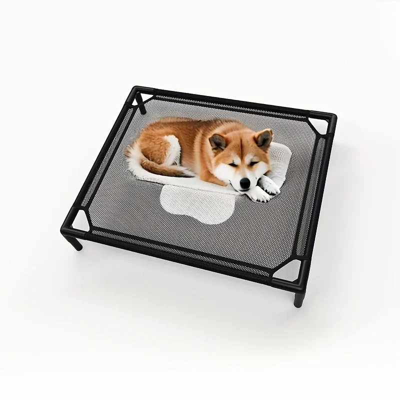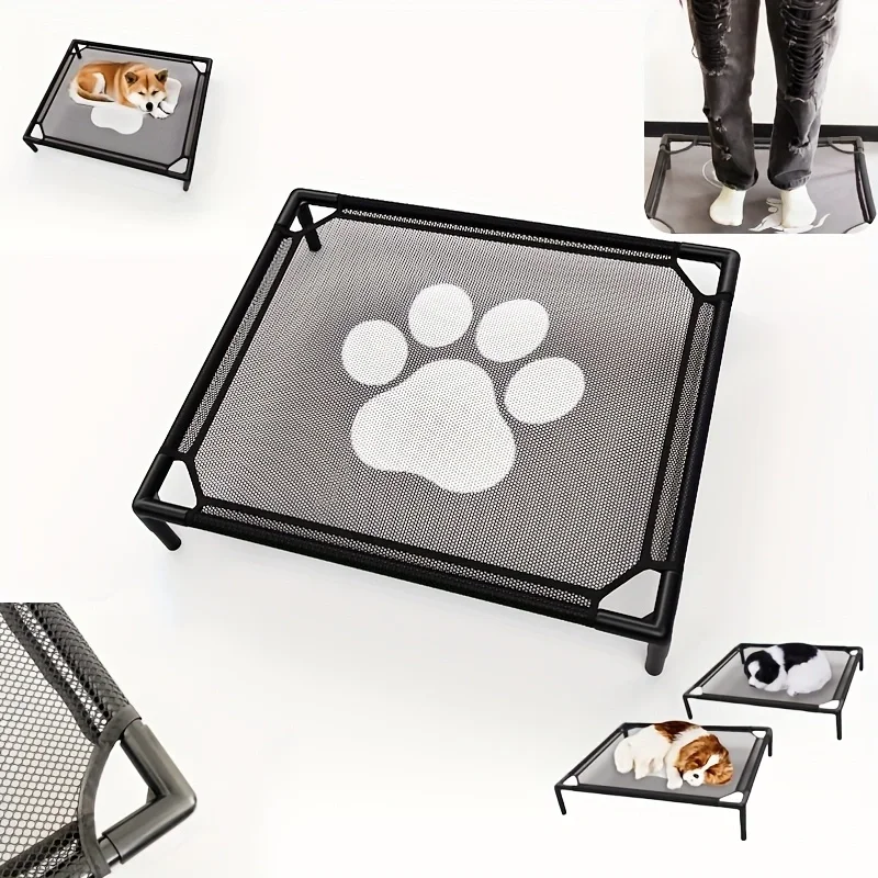 Keep your pet cool and comfortable with this Cooling Elevated Dog Cot. The raised design allows air to circulate underneath, helping your pet stay relaxed in warm weather. Made with a durable, breathable mesh fabric, it supports your pet’s body while preventing overheating. The strong frame ensures stability and long-lasting use indoors or outdoors. Lightweight and portable, it’s perfect for patios, camping trips, or home use. The non-slip feet keep the bed secure on any surface. Easy to assemble and clean, it offers convenience for busy pet owners. Suitable for small dogs and other small pets, it provides a comfortable space for resting and lounging. The sleek black design complements any setting while resisting dirt and wear. Give your furry friend the ultimate comfort and cooling support with this elevated pet bed.